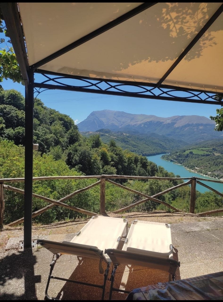 Casa Romè si trova a Comunanza, nel cuore delle Marche, con vista sul lago di Gerosa.